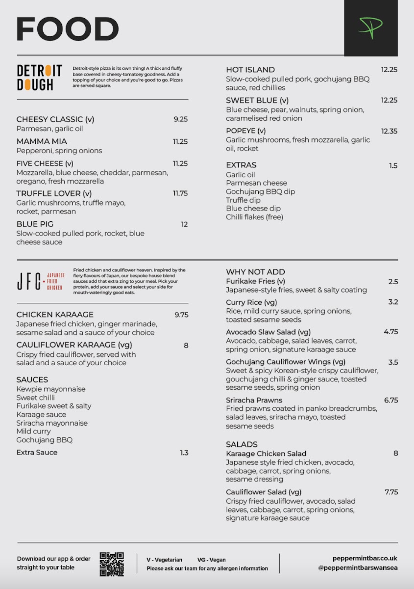 Welcome to Peppermint Bar & Kitchen, a vibrant culinary gem nestled in Swansea. This establishment presents a diverse menu that tantalizes your taste buds with its creative pizza offerings. Indulge in the Cheesy Classic or the mouthwatering Truffle Lover, featuring white truffle sauce and garlic mushrooms, perfect for those seeking gourmet flavors. If you prefer something with a kick, the Hot Island pizza boasts pulled pork and a gochujang BBQ sauce that brings a bold, spicy touch.